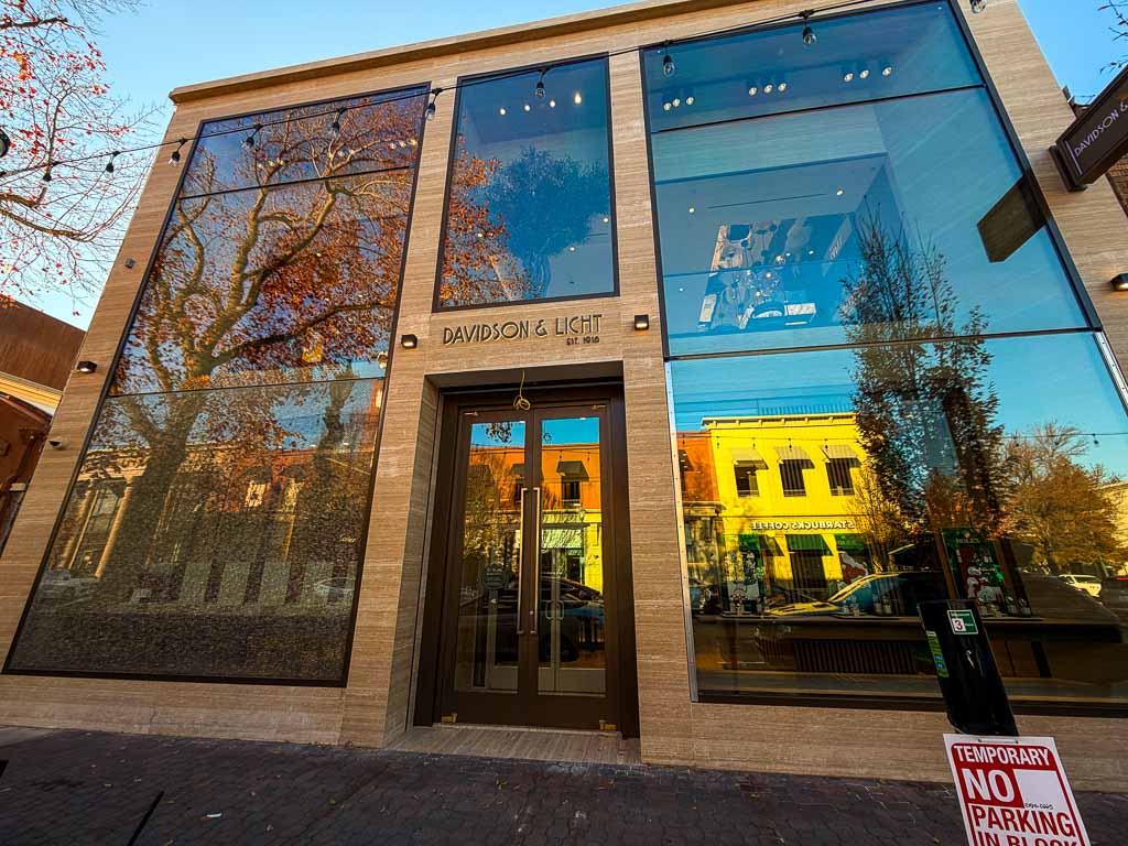 Jewelry store Davidson & Licht has reopened in their N. Main location with a brand new facade. In the fall, they temporarily relocated to Broadway Plaza where P. F. Chang’s used to be. Hopefully they can fix the shattered window seen at bottom left. Their font selection is interesting. Originally, it what a much larger cursive font, now replaced by a smaller modern looking font.