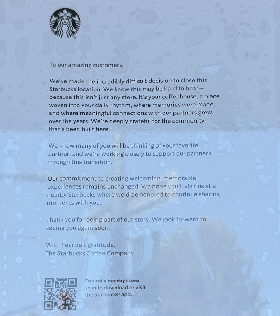 Starbucks, which opened it’s third downtown Walnut Creek location over seven years ago at the corner of Mt. Diablo Blvd. & Locust St, has closed. Apparently, over 40 Bay Area locations are closing so I’m not surprised considering how close the other two locations are, (Broadway Plaza and N. Main St.)