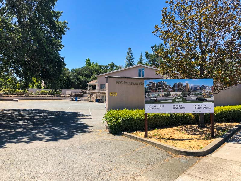 I was walking near Morucci’s deli on Boulevard Way in Walnut Creek when I passed by a sign for Saranap Village. First proposed back in 2014, it has gone through various updates until the project was approved last year. It will feature up to almost 200 apartments/condos, a supermarket, coffee shop, sit-down restaurant and wine bar. As you can see in the above photo development has yet to start. Check for updates on their Facebook page here and renderings and FAQ on their website here.